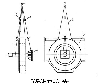 如下球磨機同步電機吊裝圖所示。以行車吊起球磨機同步電機平穩(wěn)地落在兩個轉(zhuǎn)子軸瓦上,并安上軸承上蓋。