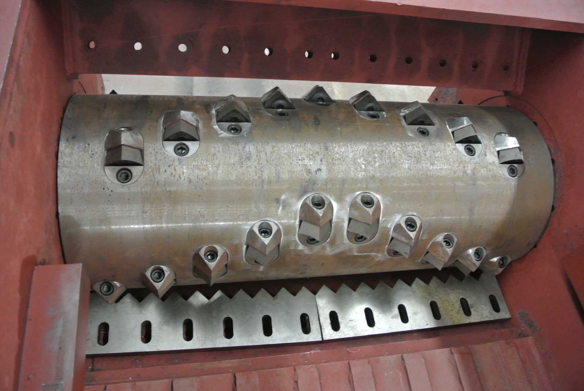 1 較單軸粉碎機(jī),該機(jī)對于難粉的大塊料、筐料 、管材、板材、木材、輪胎、廢舊金屬桶、大卷薄膜都可破碎;