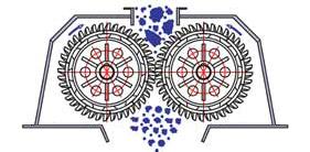 對(duì)輥破碎機(jī)也可以叫作輥式破碎機(jī)、雙輥破碎機(jī)、對(duì)輥式破碎機(jī),它是利用輥面的摩擦力將物料咬入破碎區(qū),使之承受擠壓或劈裂而破碎的機(jī)械。主要用于對(duì)物料的 細(xì)碎作業(yè)。當(dāng)用于粗碎或需要增大破碎比時(shí),常在輥面上做出牙齒或溝槽以增大劈裂作用,這種破碎機(jī)叫作雙齒輥破碎機(jī)。當(dāng)需要更細(xì)成品,產(chǎn)量更大,破碎比更大 的設(shè)備時(shí),要用到四輥破碎機(jī)。