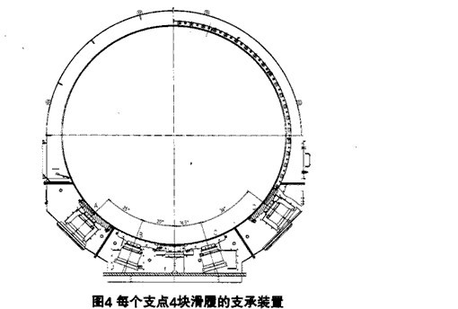 改進(jìn)球磨機(jī)滑履軸承的措施有很多種方法,下面我們吉宏球磨機(jī)廠家為您介紹的是每個(gè)支點(diǎn)采用4塊滑履的結(jié)構(gòu)。