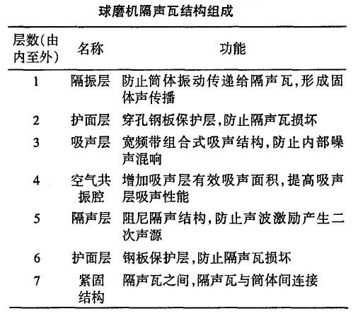1、基于球磨機(jī)噪聲特性分析,確定球磨機(jī)隔聲瓦結(jié)構(gòu)形式見下表。