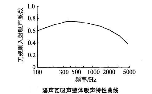 5、插入損失量計(jì)算。根據(jù)企業(yè)降低噪聲的標(biāo)準(zhǔn)和對(duì)球磨機(jī)噪聲頻譜圖的分析,最終確定隔聲瓦的頻帶隔聲量和聲級(jí)隔聲量。吸聲壁體的吸聲特性曲線如下圖。