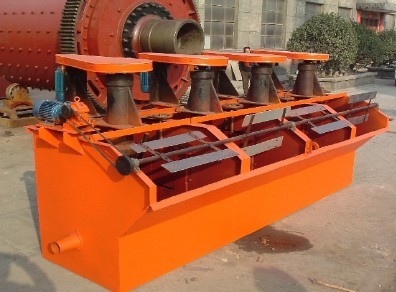 浮選機工作是在磨碎的礦石里加入水和一定的藥劑充分攪拌,調(diào)成礦漿后,向礦漿中導入空氣,形成大量的氣泡,使疏水性(不易被水濕潤)的礦物粒子選擇性地固定在氣泡上,并與氣泡一起浮到礦漿表面,然后調(diào)節(jié)閘板高度,控制液面,用刮板刮出有用泡沫,形成泡沫產(chǎn)品。其余部分則保留在礦漿中,以達到分離礦物的目地。